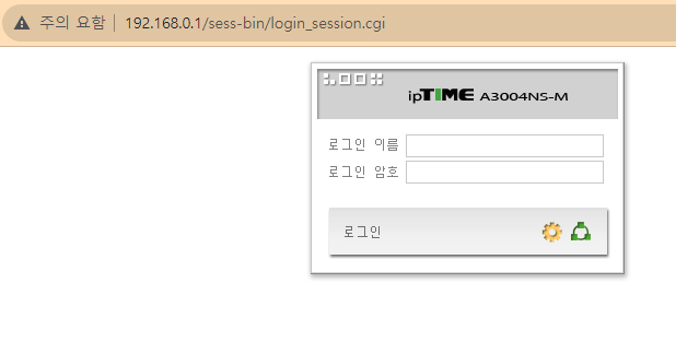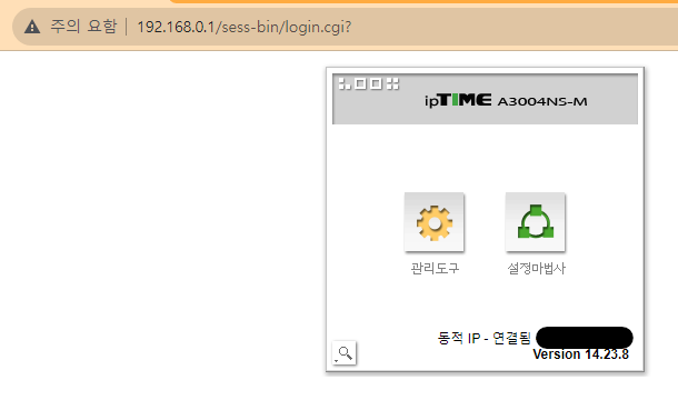 iptime 공유기 관리자 페이지의 주소는 기본적으로 192.168.0.1로 접속할 수 있다.